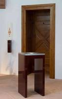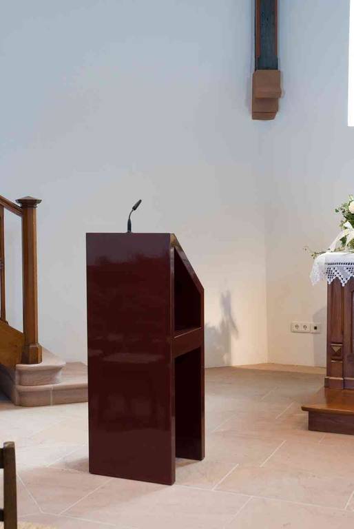 Lesepult, Taufbecken, Osterkerzenständer und die Kerzenständer auf dem Altar wurden von Nikolaus Kernbach aus Aulendorf entworfen und angefertigt.